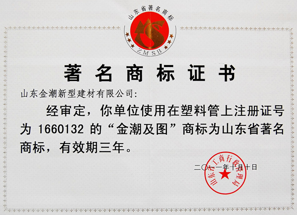 龙8国际官方手机版登录管业获“著名商标”证书